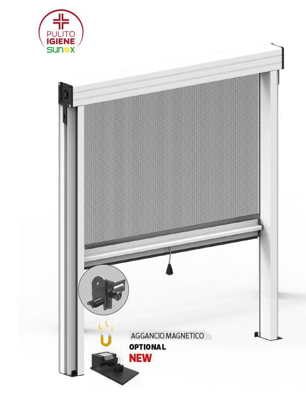 Classica zanzariera che si usa nella maggior parte delle situazioni. Ha un piccolo cassonetto dove si raccogli il telo, la si usa a scorrimento verticale per le finestre e a scorrimento laterale sulle portefinestre. Le più diffuse sono quelle a molla, in cui il telo una volta aperto si avvolge da solo nel cassonetto, con la possibilità di montare un “rallentatore” che evita che il telo salga bruscamente; oppure esistono modelli con azionamento a catenella.